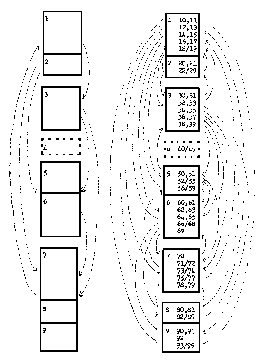 I områdena 1-9 har redovisats 129 delområden betecknade med två siffror 10-99 och i en del fall beteckande med tre siffror där det varit lämpligt med en uppdelning av tvåsifferområdena. Varje delområde innehåller verksamheter som har något gemensamt så att varje område för sig bildar ett problemområde med egen karaktär.